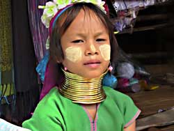 チェンライは、チェンマイに次ぐタイ北部の基幹都市で、昔のラーンナー王国の首都で大きいです。 ここを起点として、郊外の少数民族の村へのトレッキングも盛んですが、ほとんどの村は観光用に開発されて村で、 ラオスやミャンマーのような、素朴な観光客づれしていない村は少ないです。 首長族の村はその典型です。 本来、ミャンマーの山間部に暮らしていたカレン族の満月の水曜日に生まれた女性だけが、アクセサリーとして首に まいていた習慣が、近年テレビで取り上げられ、有名になりました。 その影響で、山の中にくらしていたカレン族にも貨幣経済の波が押し寄せ、この習慣が金になると解り、タイの観光資本 の後押しで、タイ国内の観光村に移住してきたのが、現在の姿です。 チェンライの首長族の村は、歴然とした観光施設で、入場料は500BH(2011年相場で1,300円)です。最近は、満月の水曜日 以外のカレン族の女性もロングネックをする女性が増えました。理由は金になるからです。 本当の素朴な少数民族トレッキングをするのならラオスのムアンシをお勧めします。 詳しいラオス・ムアンシ情報は当サイトラオス 少数民族の村 ムアンシご覧ください。 |